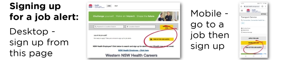 You can also sign up for job alerts at the top of the page under the banner (desktop) or go to a job to sign up (mobile) – if you are finding the process a little confusing, there is a ‘how to’ sheet attached to the ‘Job Alerts’ red button below.